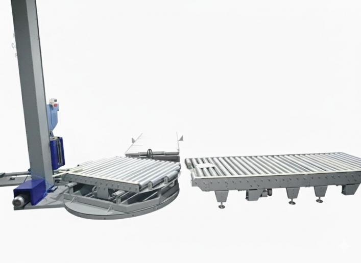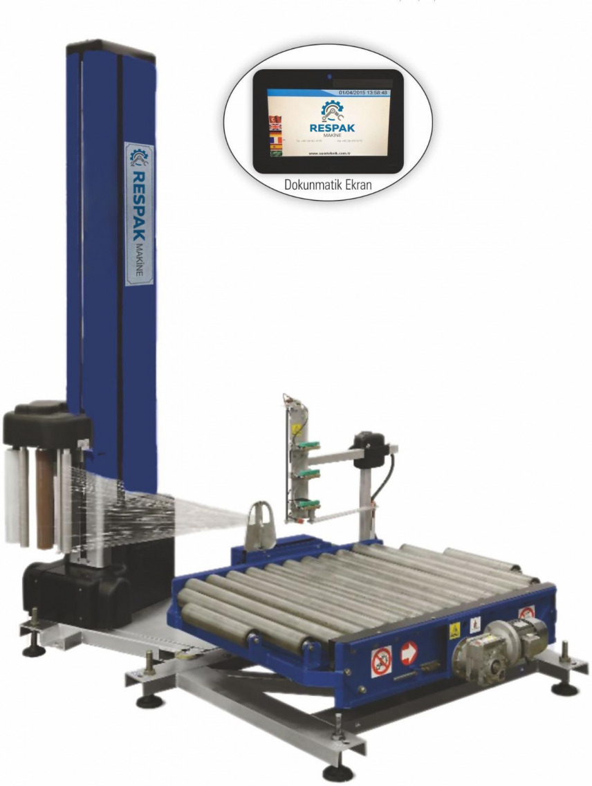 Paletleme hattından gelen ürünlere; streç filmi otomatik olarak bağlanır ve streç sarımı sonrası film otomatik olarak kesilir.